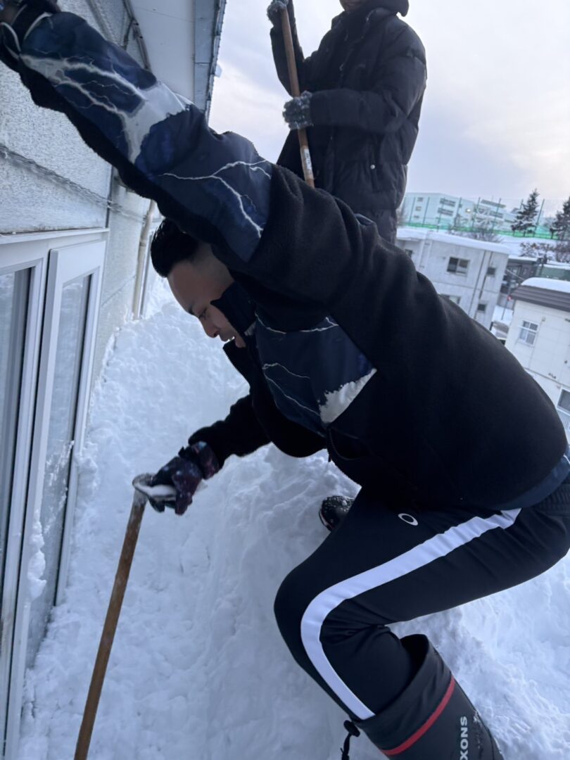 事情を共有すると、すぐに数名が駆けつけ、スコップを手に除雪を開始しました。